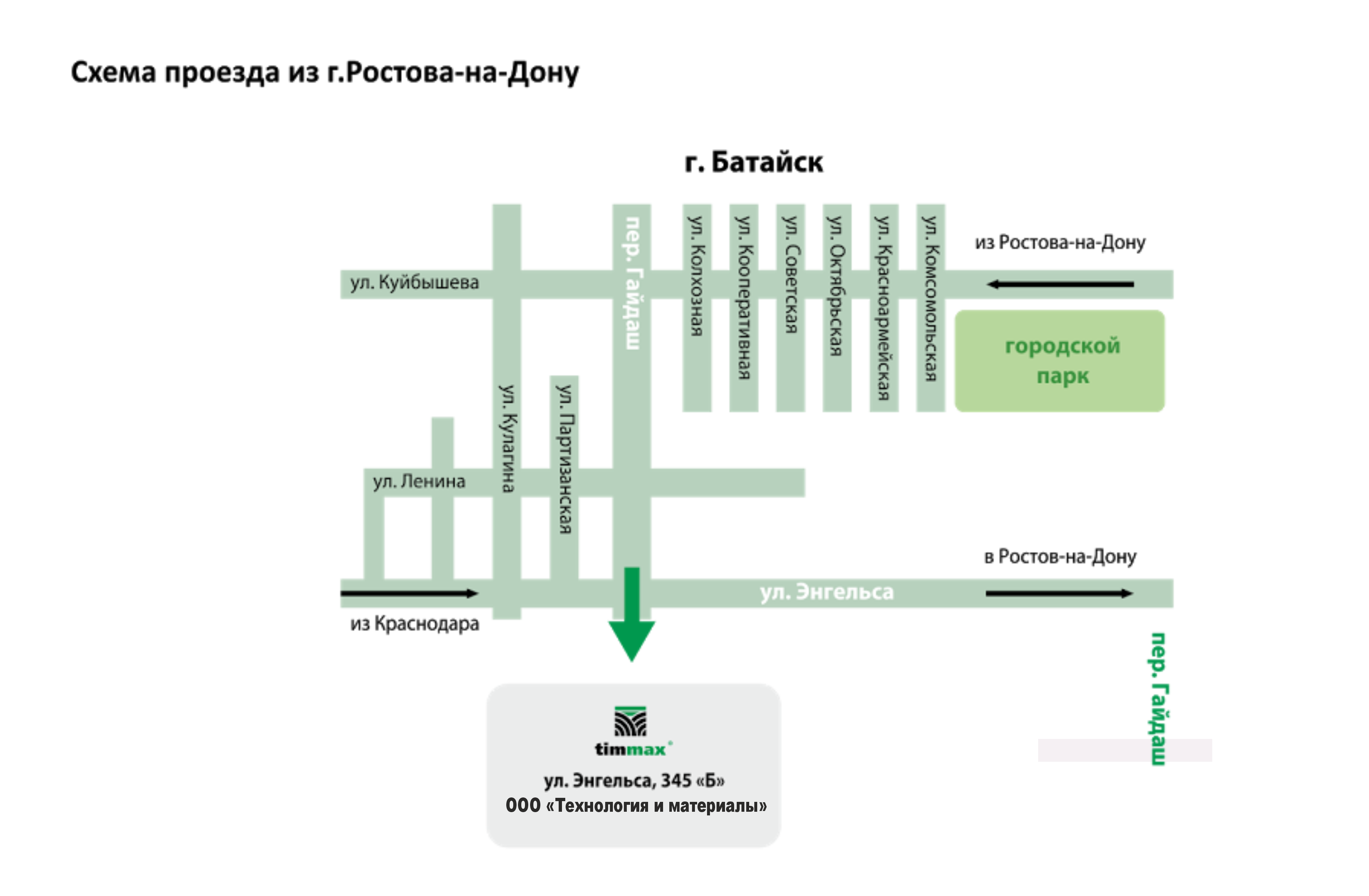 Мы на карте Производство и продажа продажа сухих строительных смесей timmax® ООО «Технология и материалы» Ростовская область Адрес: 346887, Россия, Ростовская область, г. Батайск, ул. Энгельса, 345Б Телефоны: +7 (86354) 7-17-30 +7 (86354) 7-17-37 +7 (86354) 7-17-47 +7 (863) 248-17-86 8-800 350-61-12 звонок бесплатный Электронная почта: sbittim@gmail.com Приём заказов будние дни с 9:00 - 18:00 РИ Адрес: 386231, РИ, г. Карабулак, ул. Промысловая, 120Б Телефоны: +7 (962) 638-65-05 Электронная почта: tim-karabulak@yandex.ru Приём заказов будние дни с 9:00 - 18:00 Официальный сайт: тиммакс.рф Интернет-магазин: tim-store.ru Схема проезда